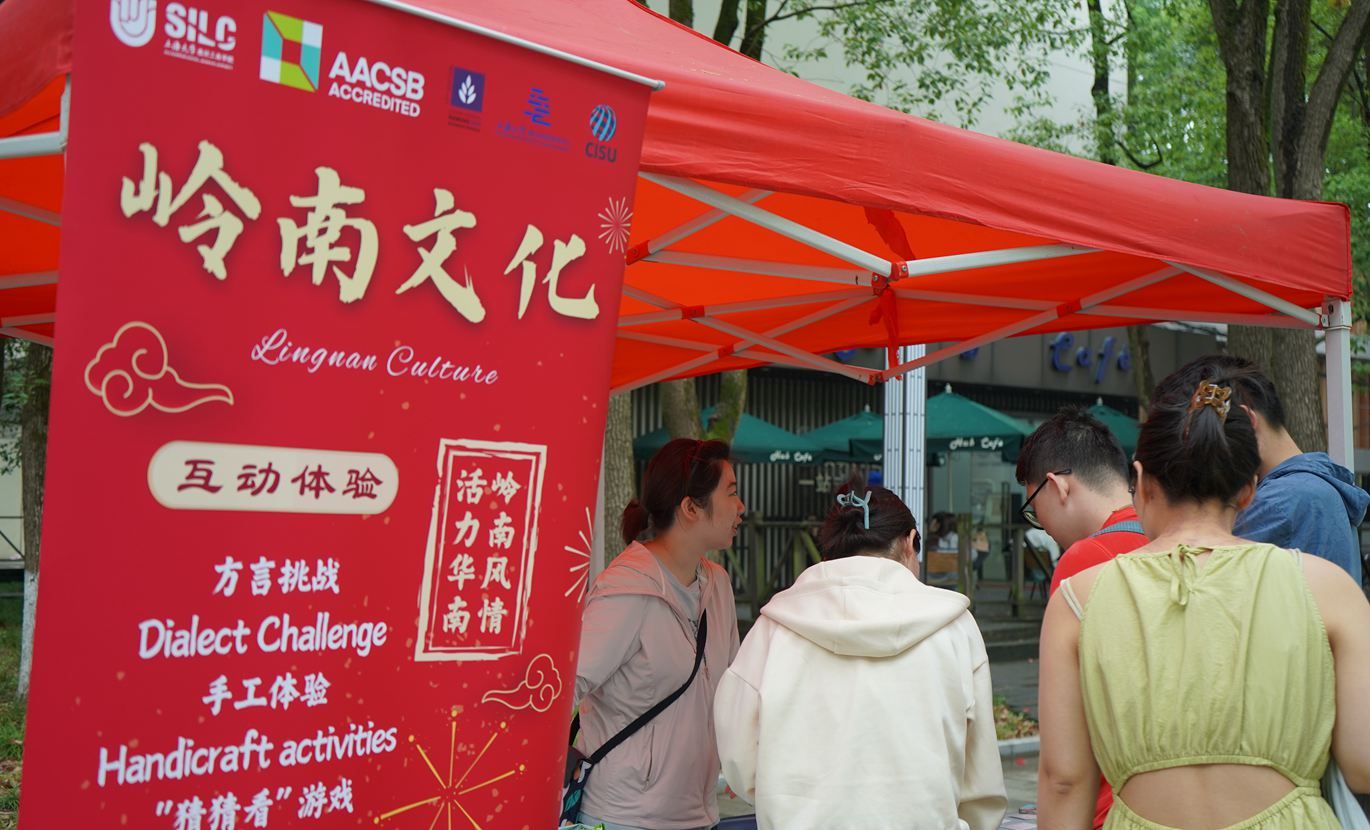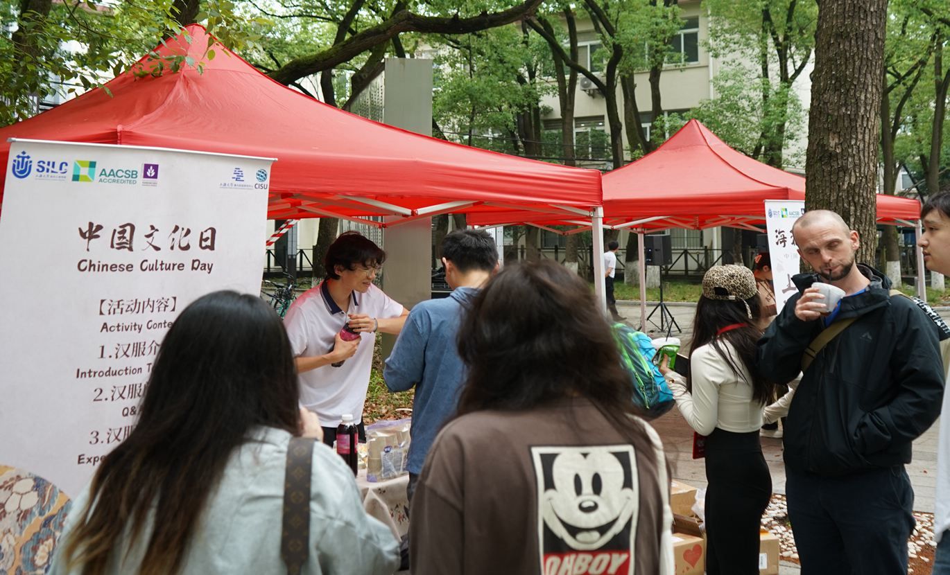 5月16日,中国文化国际传播训练营的压轴活动——中国文化游园会在嘉定校区文荟广场正式拉开帷幕。游园会活动共设六个展台,展台以海派、巴蜀、岭南、黑土等地方文化元素为主题,为大家展现了不同地方文化的独特魅力。打卡各大展台,同学们在体验传统文化的同时,还可抽奖赢取精心准备的中国风礼品。中外学生通过主持展台活动,向各群体的参与者,包括学院中外学生、中外教师、嘉定校区兄弟学院师生以及来访的校外嘉宾展示中国各区域的亚文化和细分文化元素,并开展交流和互动。 On May 16th, the grand finale of the Chinese Culture&International Communication training camp, the Chinese culture exhibition activities, was officially kicked off at the Wenhui Square of Jiading Campus. Six booths were set up, themed with local culture elements, showing the unique charm of different local cultures. While visiting the booths, students could experience traditional culture and win gifts. Chinese and international students hosted exhibition booths, presenting diverse subcultures and nuanced cultural elements from various regions of China to participants from different groups. These included SILC's Chinese and International students and faculty, peers from neighboring schools at Jiading Campus, as well as visiting guests, fostering cross-cultural exchanges and interactions.