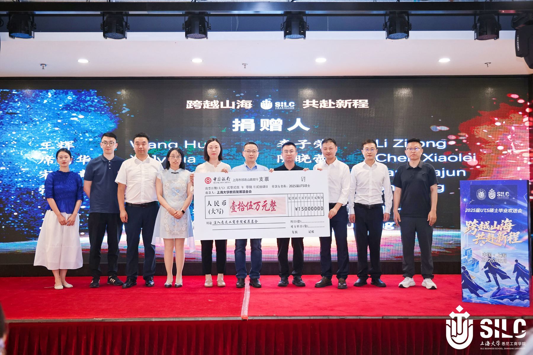 浓浓感恩情化为薪火相传的实际行动。王辉、李子荣、席菊华、陈晓蕾、宋丹青、唐佳骏、张皓、时清、李明、江燕等代表2025届UTS硕士毕业生向学院捐款,卞亦文院长代表学院接受毕业生捐赠。