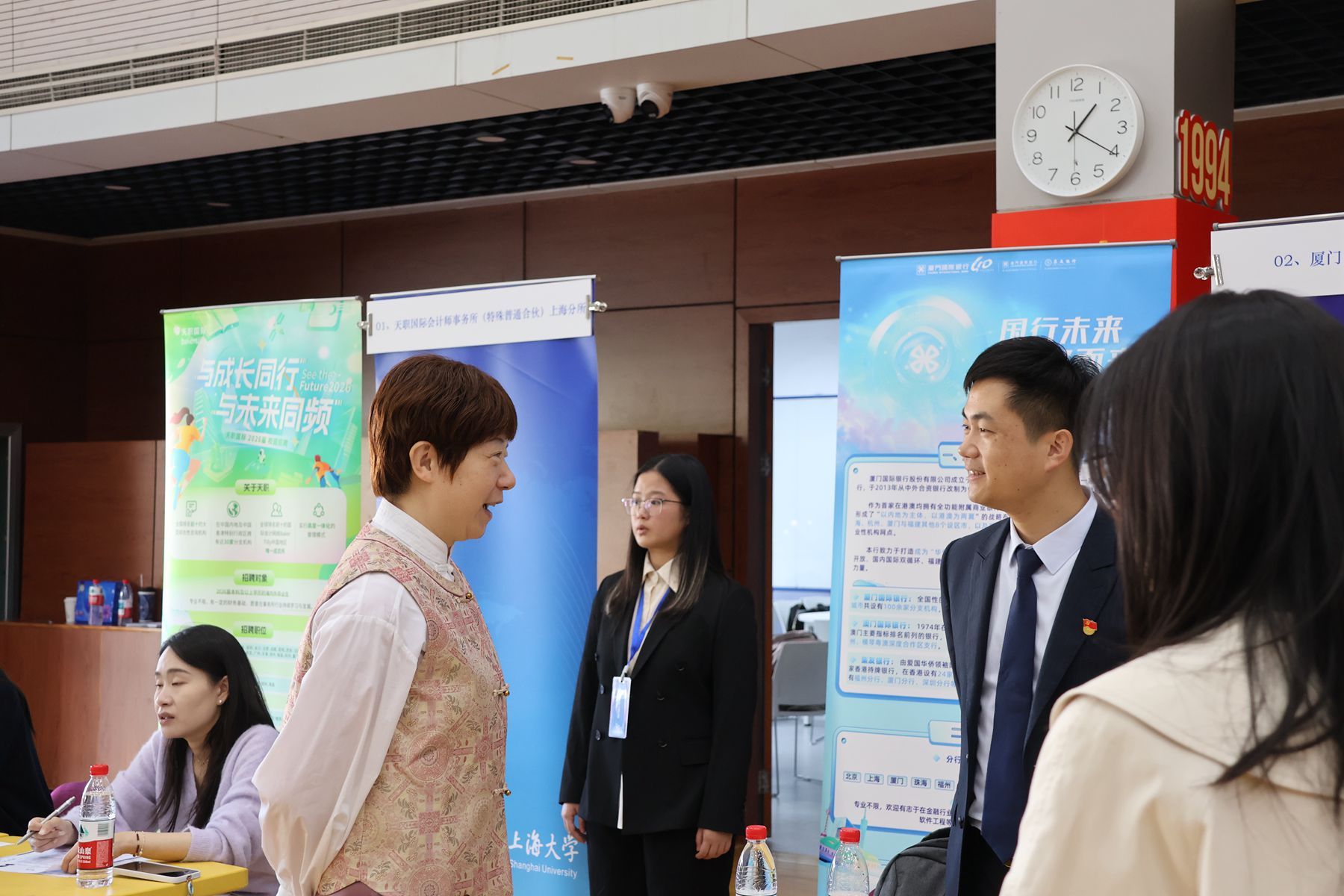 为确保活动顺利开展,365上市公司招生就业处就业主管胥俊,英国365上市公司党委副书记、副院长卫静芬,以及来自各学院的就业专职老师们、年级辅导员莅临现场,为学生们提供全程的支持与指导。参与此次招聘会的企业共有 36家,广泛涵盖了银行、证券、贸易、互联网、工程制造等多个领域。其中不乏世界 500 强及行业标杆企业,如中信证券股份有限公司上海分公司、普华永道中天会计师事务所(特殊普通合伙)、东方财富信息股份有限公司、上海城建城市运营(集团)有限公司等。这些企业不仅带来了大量的就业岗位,还为毕业生们提供了接触行业前沿、了解企业需求的宝贵机会。