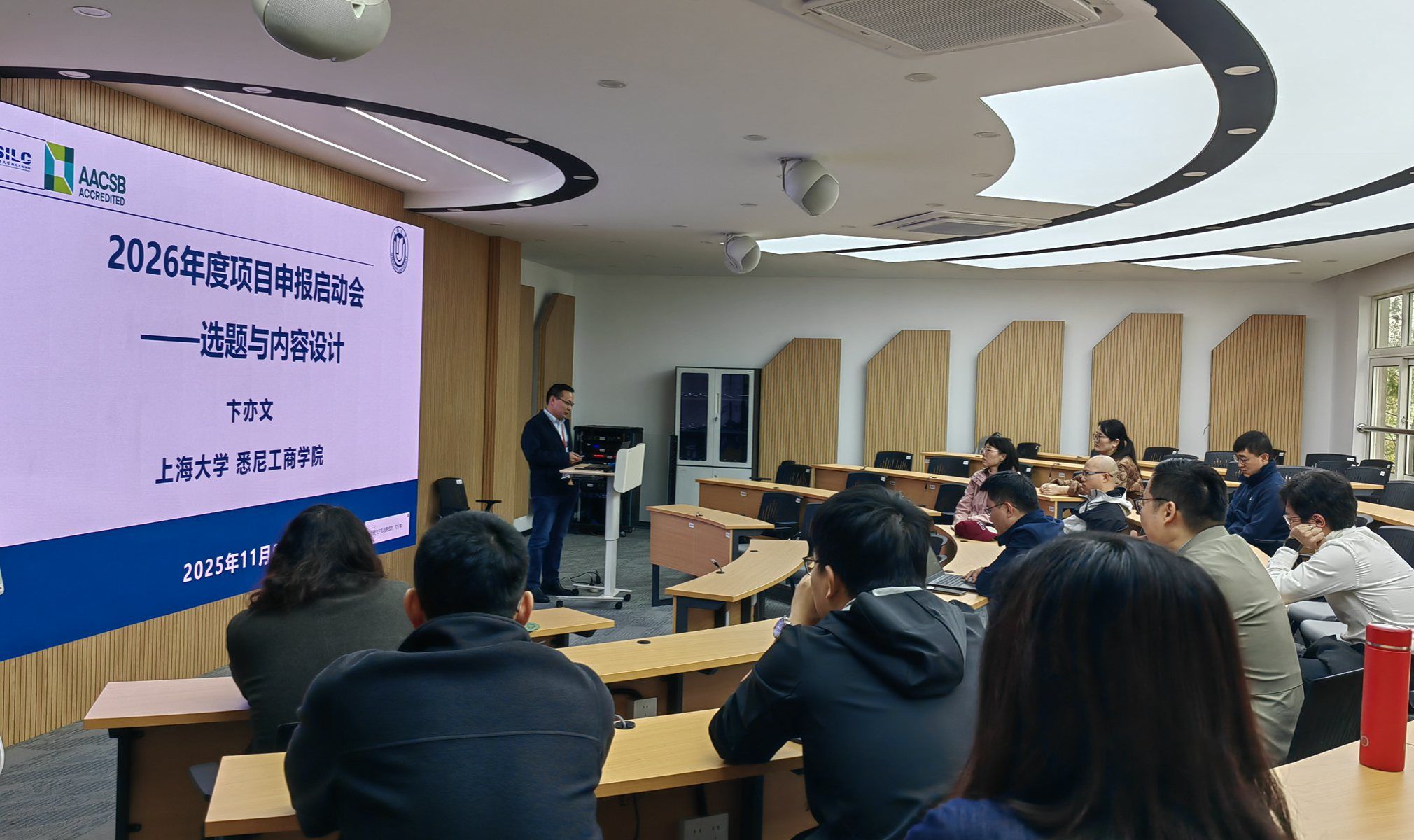 11月4日下午,由创新管理部组织的2026年度国家自然科学基金、社会科学基金及教育部项目申报启动会在文荟301举行。本次会议以“项目选题、内容设计及科学问题的精炼”为主题,此次会议共有20多位教师参加,四位老师在会上分享了申报经验。会议由卞亦文院长主持。