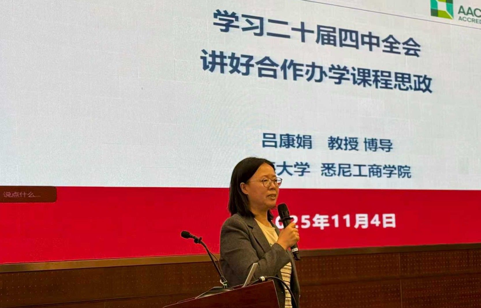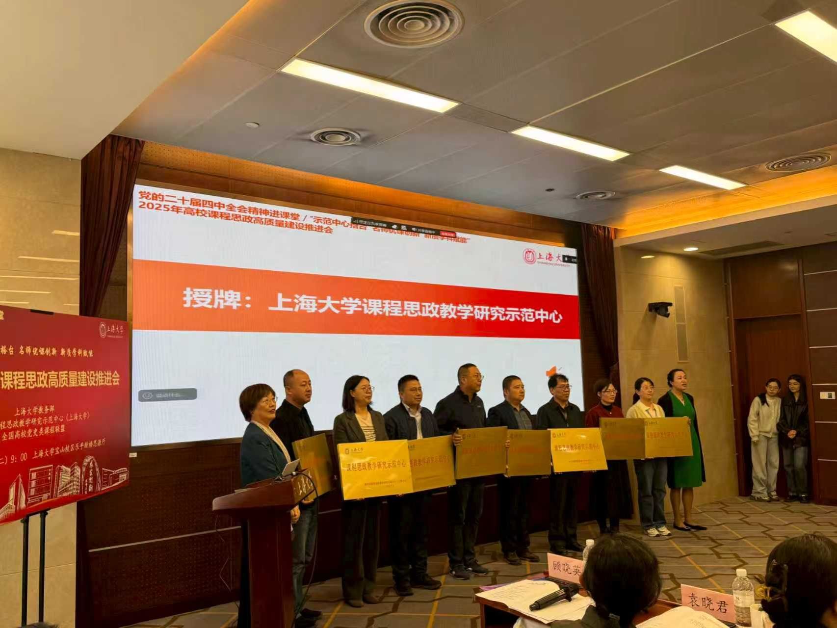 11月4日上午,2025年高校课程思政高质量建设推进会在365上市公司乐乎新楼思源厅举行。我院成功入选并成为首批8家校级课程思政教学研究示范中之一。英国365上市公司党委书记吕康娟教授作为学院课程思政教学研究示范中心负责人、2025上海市课程思政教学设计展示活动特等奖获得者,受邀出席推进会。于雪梅副校长为推进会致开场辞,并为获得校级课程思政教学研究示范中心的学院授牌。
