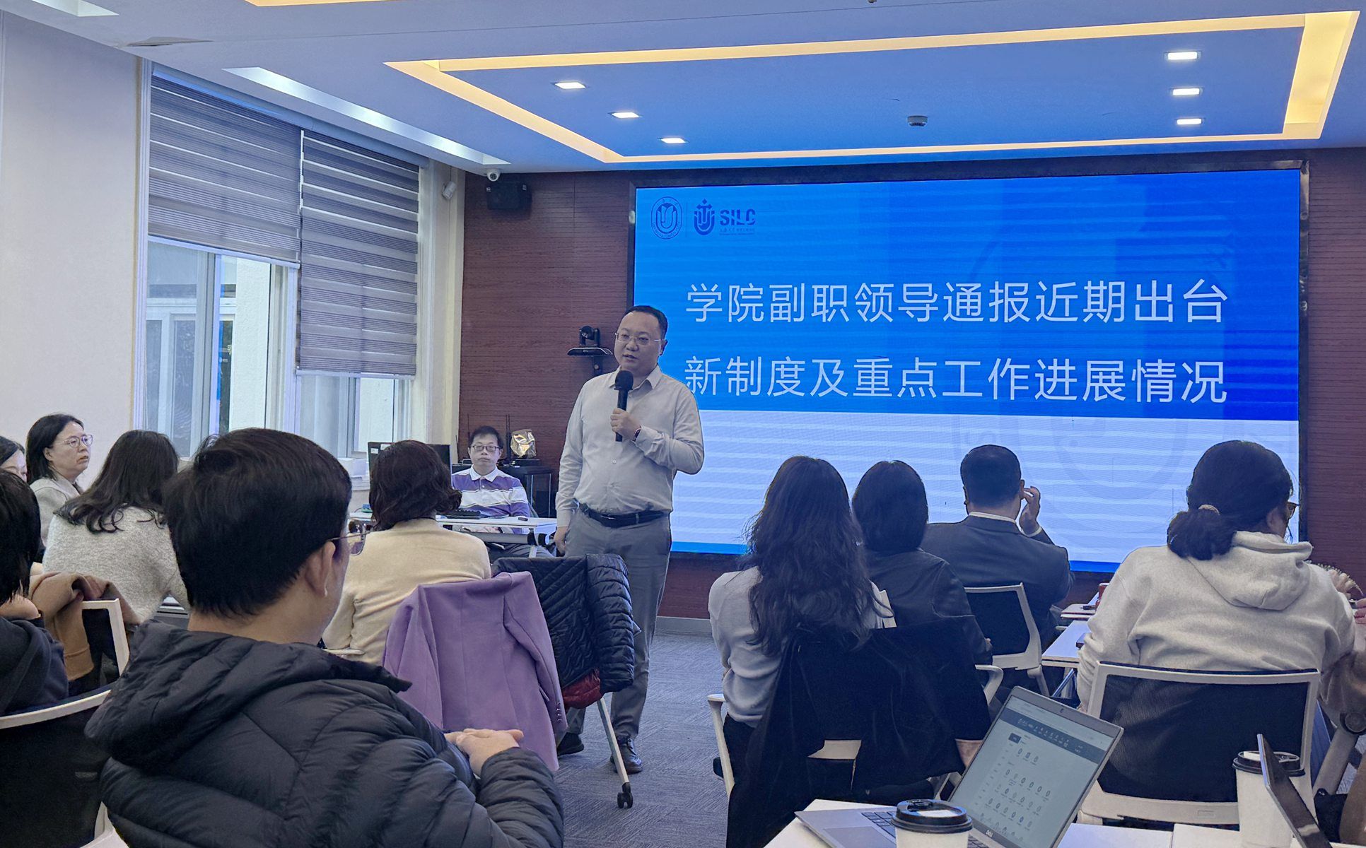 卫静芬副书记通报了近期本科生学术论坛、本科生学术训练营、国贸专业学术项目衔接荣誉项目试点、学院舆情维稳等方面的工作情况。