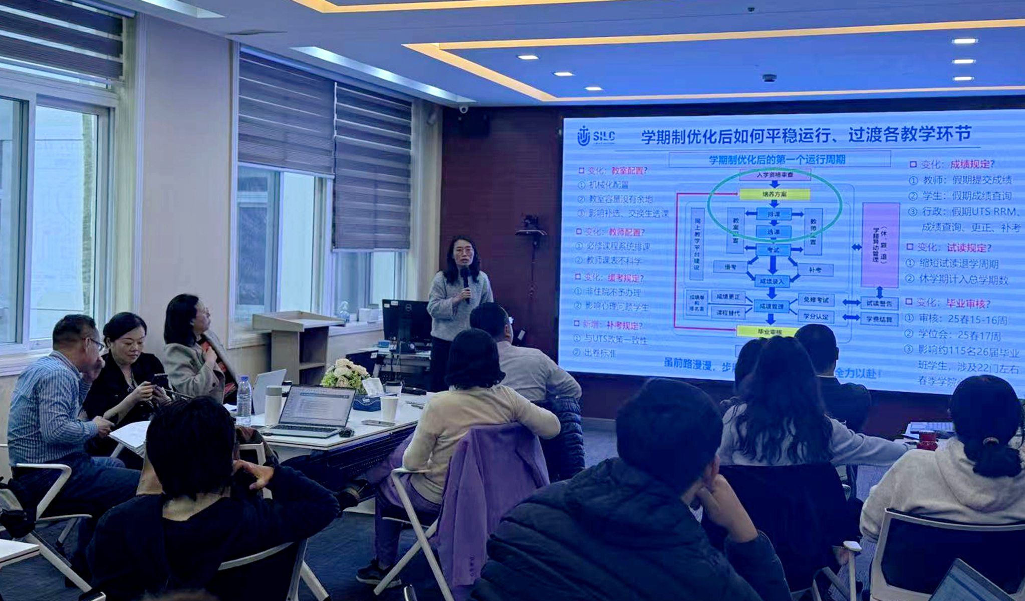 霍伟伟副院长通报了学院学期制优化工作的最新进展,提出为保障学期制优化后的过渡阶段教学管理工作的平稳运行的若干难点问题,要求各系与教学管理部共同努力克服困难,确保学期制优化工作行稳致远。