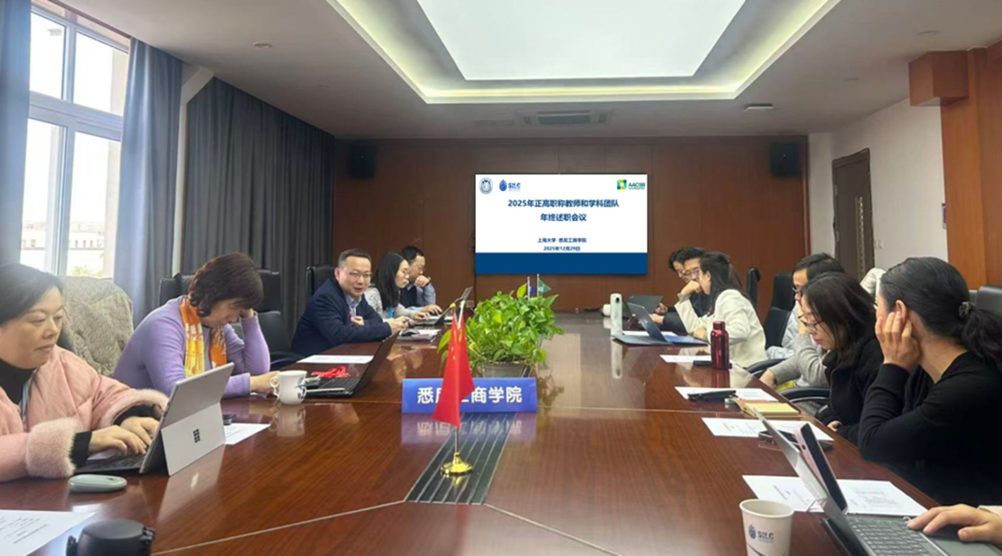 12月29日下午,英国365上市公司在文荟楼409室召开2025年度正高职称教师与学科团队年终述职会议。学院领导班子成员、全体正高职称教师、各学科团队负责人及相关职能部门人员参加会议,会议由卞亦文院长主持。