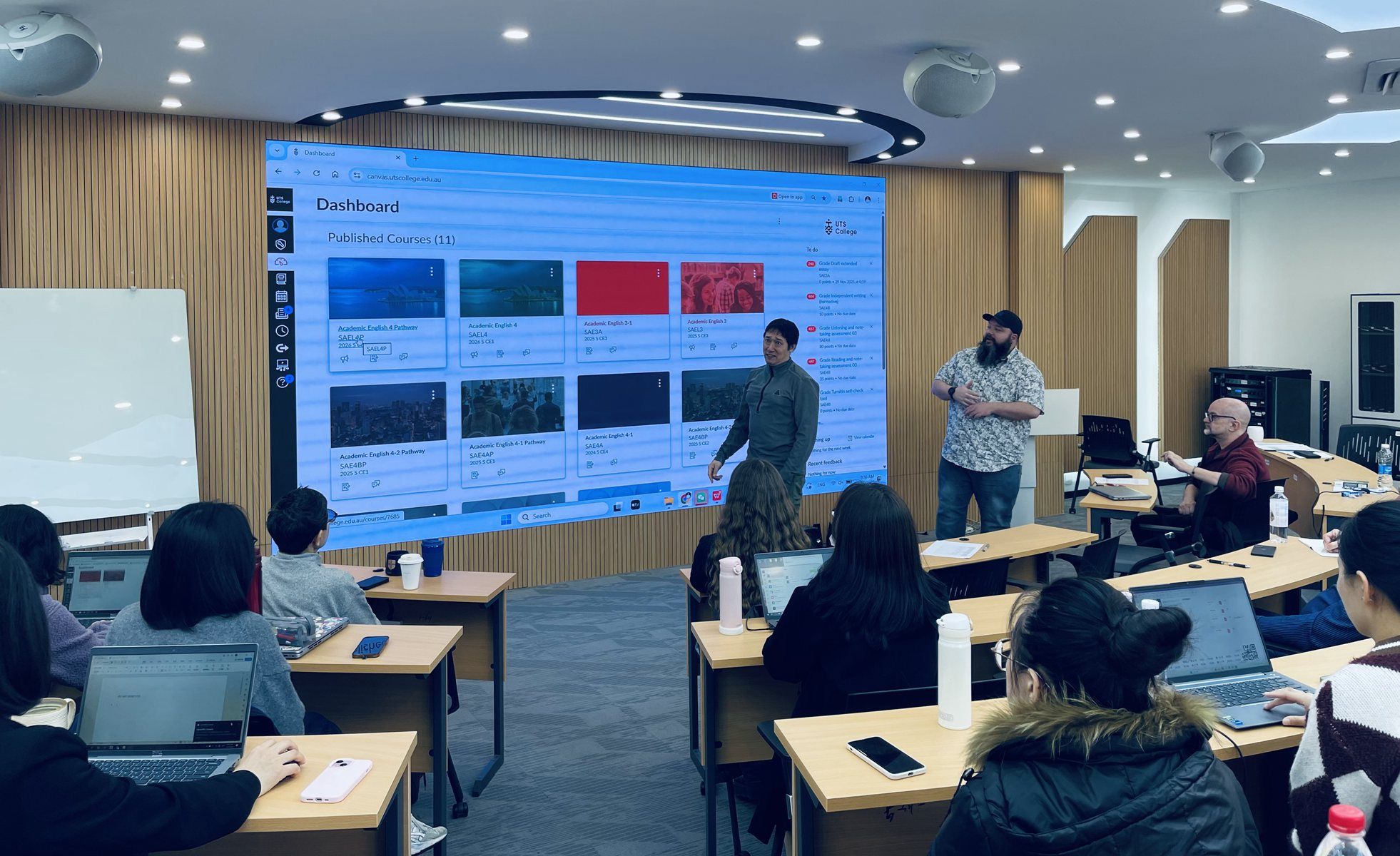学术英语总监Richard Madden总结了本学年第一学期的教学工作,展示了各类英语课程的教学成果和成绩分布,肯定了三个项目的学生在不同的英语课程中所取得的优异成绩。他对全体教师的优质教学、敬业精神和勤恳付出给予了高度认可和衷心感谢,勉励中外教师继续用自己的专业技能和职业操守为学生带来更高质量的课堂教学与课后拓展。 英语课外活动负责人Oliver Rowe分享并回顾了第一学期的英语角和其他学生活动。本学期的各类学生活动(如主题多样的英语角、游戏之夜和Chatterbox)受到了学生的热烈欢迎,也吸引了研究生和留学生参与其中。谈及新学期的活动计划时,他邀请大家设计新主题,畅想新活动,力求在第二学期呈现更丰富多彩的英语课外活动,激发学生的兴趣,使之成为课堂教学的课后延续和有效补充。 随后,英语系SILC Circular(悉商通讯)主编Lauren Rudolph简述了本学期的通讯内容、进展和下学期的规划,号召教师们继续投稿。全体中外教还参与了趣味横生的互动游戏 Stop the bus,进一步加深了对通讯内容的了解。此外,Lauren作为新任ILC (自主学习中心)主管,还介绍了第二学期AE4课程所包含的40个小时的ILC学习时间。在这40个小时中,学生将使用超星平台独立或通过小组合作完成每周预设的学习任务。学生也会在ILC进行课外拓展听力和阅读等练习并进行每周总结,衔接课堂学习,扩展知识与技能。 学术英语课程主管John Johnson (JJ) 和 Anthony Furtado回顾了本学期的AE3课程,带领中外教集思广益,讨论可以改进和优化的方面,并重点介绍了新学期AE4课程在教学目标和课程设置上的重大改变,增进全体教师对新课程的了解。JJ和Anthony会继续使用不同的方式和平台全面支持中外教的教学工作,并将于1月20日组织新教师培训,帮助新教师尽快适应教学环境和模块。
