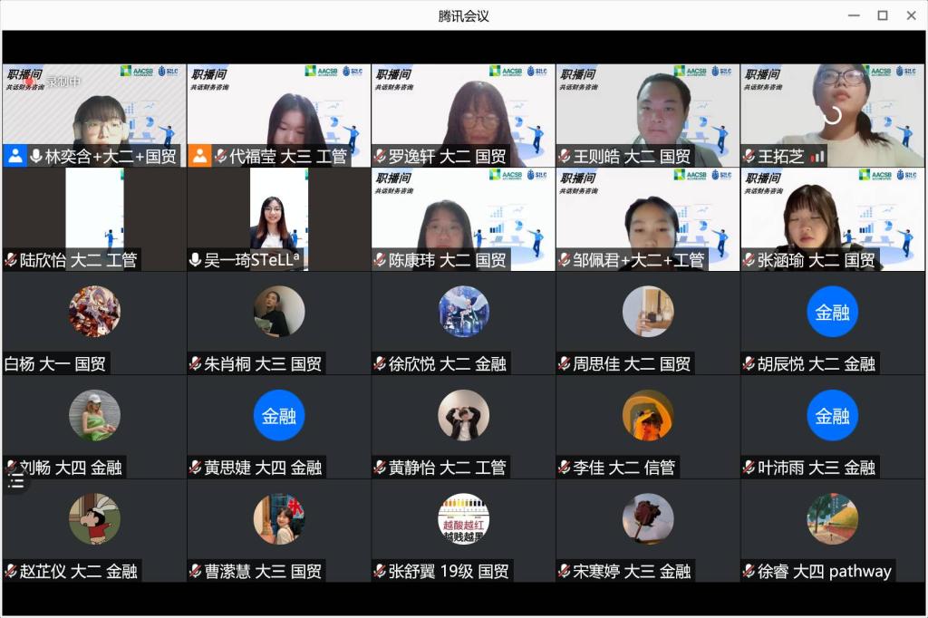 2021年9月24日晚八点,由上大悉商实习就业指导中心举办的第二十五期职播间活动在腾讯视频会议平台举行。此次我们邀请到了2011级,现任威富服饰(中国)有限公司上海分公司财务经理的吴一琦校友,为对财会行业感兴趣的同学解读财务与税务方面的行业知识以及财会行业未来的发展方向,揭秘想要进入四大会计师事务所所需要做的职业准备,共有30余名同学参与了活动。