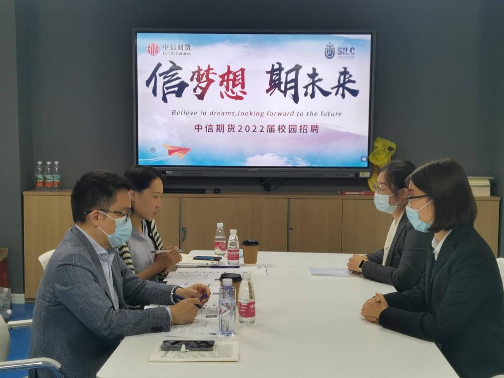 2021年10月19日中午12:30,中信期货2022专场招聘会在英国365上市公司文博楼顺利举行。作为中信集团大家庭中的一员,中信期货雄厚的股东实力和丰厚的薪酬福利,吸引了近50名同学前来参与。本次活动包括宣讲会和现场面试两个部分,宣讲会部分由企业人力资源部石磊主持。