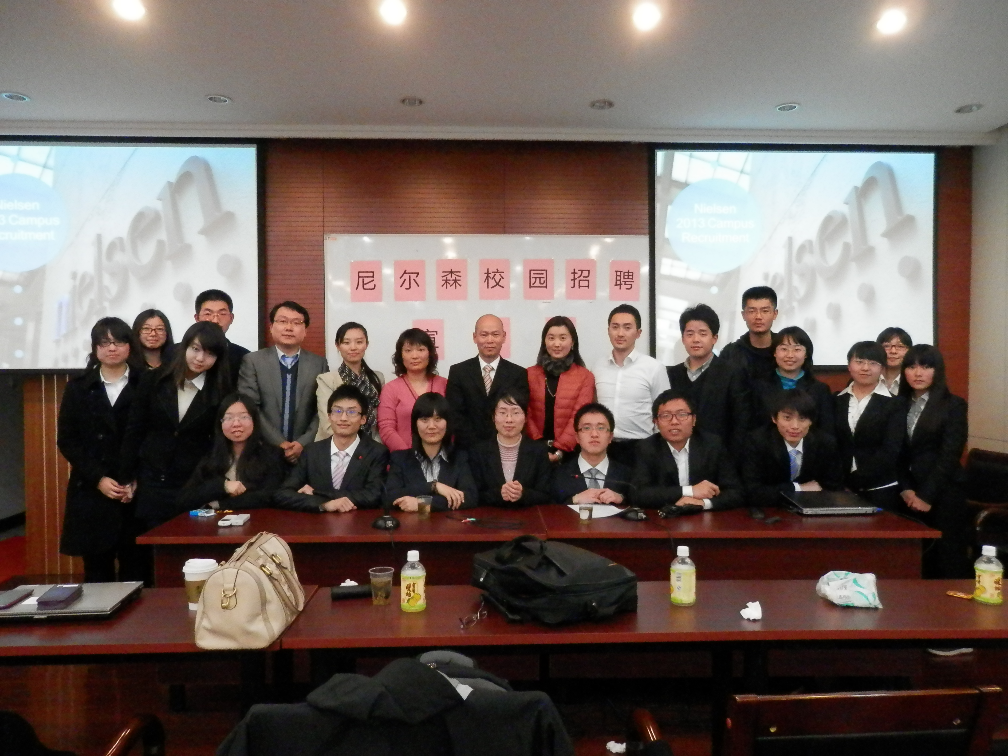 尼尔森2013校园招聘宣讲会于2012年12月11日晚上6:30-8:00在365上市公司嘉定校区文德楼三楼报告厅隆重召开。当晚,尼尔森公司的HR总监,Operation VP(运营副总裁)等八名代表亲临现场,为在场同学奉献一场精彩的宣讲。此次宣讲会不仅吸引我校近两百人到场聆听,更有数名来自英国帝国理工大学的精英,同济大学、上海财经大学的外校同学踊跃参与,取得较好的反响。