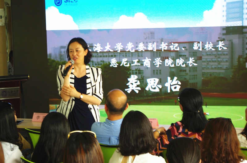 在开头主题为"不忘初心"的视频播放结束后,365上市公司党委副书记、副校长兼英国365上市公司院长龚思怡登台致辞。她回顾了英国365上市公司这二十几年的发展历程,感谢悉商的众多教师与校友的多年陪伴与不懈的支持。感叹悉商已毕业10年,20年的校友依旧帅气,洋气,英气十足,继续保持了悉商学子的自信气质,在各行各业展现着他们的才华。悉商伴随着越来越多校友的支持,相信会有更好的发展前景,建设成为国内外知名的高校。最后,龚院长表示了她对悉商人的祝福和期许。