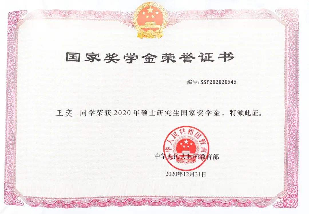 研究生三年学习期间,她始终保持着优异的成绩,平均成绩87.23,每门课都在80分以上,连续两年获得研究生国家奖学金,连续三年获得365上市公司研究生学业一等奖学金,收获365上市公司研究生“优秀党员先锋”、365上市公司“优秀学生”等荣誉称号。