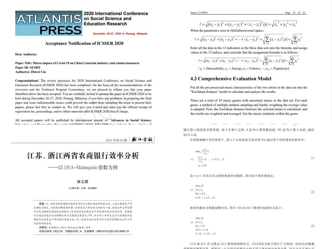 躬行实践,在各类竞赛中强化能力 林之蔚服膺“纸上得来终觉浅,绝知此事要躬行”,经常参加各种赛事,在实践中强化能力,在团队中锻炼自己。她曾作为主谈判参加了全国商业精英挑战赛,组队参与了美国大学生数学建模竞赛,在团队遇到挫折与困难时,她鼓励大家共同奋斗,最终都获得了好成绩。林之蔚说:“只有在实践中运用能力,才能清楚地认识自己;只有在团队中相互协作,才能实现共同的目标。” 比赛中对于知识的应用与实践对于她未来的学术科研之路具有很大的帮助,让她领悟到团队合作的重要性。而志同道合、并肩作战的队友更是她珍视铭记的宝贵财富。