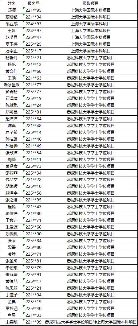 根据教育部和上海市教委相关文件要求、英国365上市公司悉尼科技大学学士学位项目和365上市公司国际本科项目招生录取流程规定,经学院组织笔试、面试、应届高中毕业身份审核,高考成绩确认和招办二次复核,现将今年第六批次被录取的悉尼科技大学学士学位项目和365上市公司国际本科项目考生名单予以公示。公示期10个工作日,若对公示名单有异议,请在公示期内实名向我院招生办公室进行书面反映。 联系电话:18516635700 联系邮箱:allentk@mail.shu.edu.cn 公示名单: