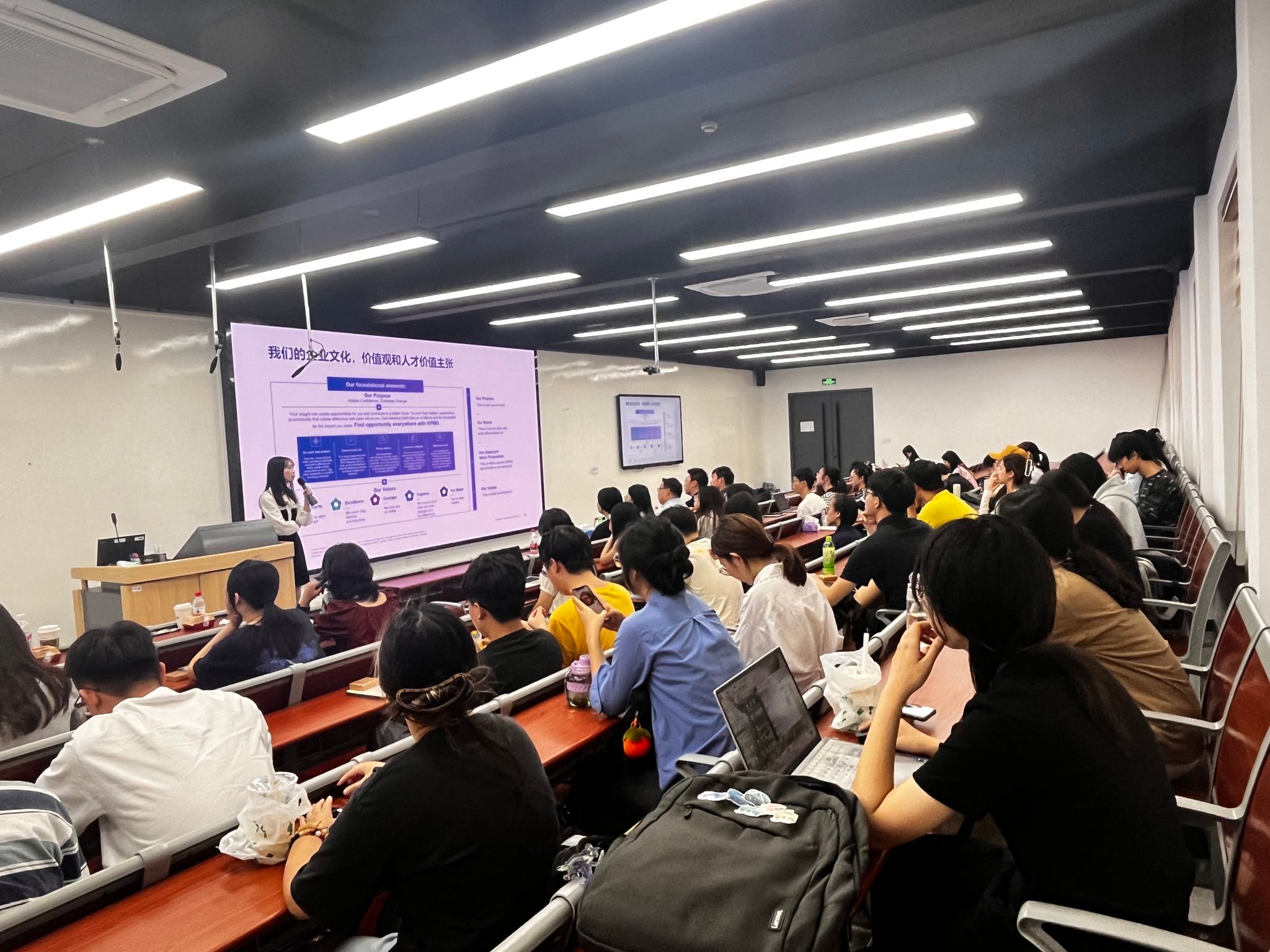 9月27日下午,2025毕马威校园招聘宣讲会在英国365上市公司文德楼205顺利举行。本次活动吸引了百余名同学前来参加,现场出席嘉宾包括毕马威咨询部门副总监郭洪雨、审计部门经理陶泽英和朱屹嘉、信息技术审计部门经理俞竹玮,人力资源部经理周玙昕、助理经理盛雨沁。宣讲会由盛雨沁主持。宣讲会共分4个环节展开,依次是公司概况,各部门简介,校招与实习项目介绍及问答环节。 盛雨沁首先介绍了毕马威在中国市场的基本情况,包括各自不同领域的服务客户、数字化转型目标等。她提到毕马威率先进入并致力于发展中国市场。 随后,由各位嘉宾从各自所在岗位的角度分享了在毕马威工作的体验与感想。值得一提的是出席本次宣讲会的嘉宾中,有多位是我们365上市公司的校友。其中,朱屹嘉用亲身经历和大家分享了审计工作是一个开放的平台,让他们能够与其他业务进行合作,涉及社交、技术、信息等多个领域,在接触不同行业的底层业务中收获并汲取丰富的经验。他同时强调进入审计部门所需要的两个资质:第一对于数据审查认真负责,心细对待,第二,思维方面灵活,善于表达。陶泽英分享了在毕马威的真实体验,同事间有良好沟通交流同时拥有丰富的团建活动与项目。俞竹玮介绍了信息技术审计相关业务,包括确保自动化企业库信息可靠真实有效、信息库的安全储存访问等工作。他同时指出在该部门工作有利于拓宽视野,能够清晰了解不同层次企业内部控制与管理水平的表现,有助于提升认知思维。郭洪雨介绍了咨询部门从项目孵化到成型各个环节涉及的咨询业务,并强调在工作中需要了解不同企业底层的商业逻辑,剖析不同的商业模式、发展方式。 针对应届生招聘项目和实习生项目的亮点及申请流程,盛雨沁做了详细的解说,包括网上测试和面试,并建议同学们根据自身专业兴趣参考实习专业化路线与探索路线。 在最后的问答环节中,同学们积极提问关于网申、面试、简历等相关问题,与嘉宾们进行深入交流与探讨。 毕马威校园招聘宣讲会至此圆满落幕, 成为了同学们一次连接校园与职场、理论与实践的重要桥梁。毕马威,作为全球领先的专业服务机构之一,其深厚的行业洞察力、专业的服务能力和广泛的全球网络,在审计、税务、咨询等多个领域取得了举世瞩目的成就。从支持全球最复杂的交易,到助力企业实现数字化转型,再到为政府和社会组织提供前瞻性的战略建议,毕马威始终站在行业前沿,引领变革。