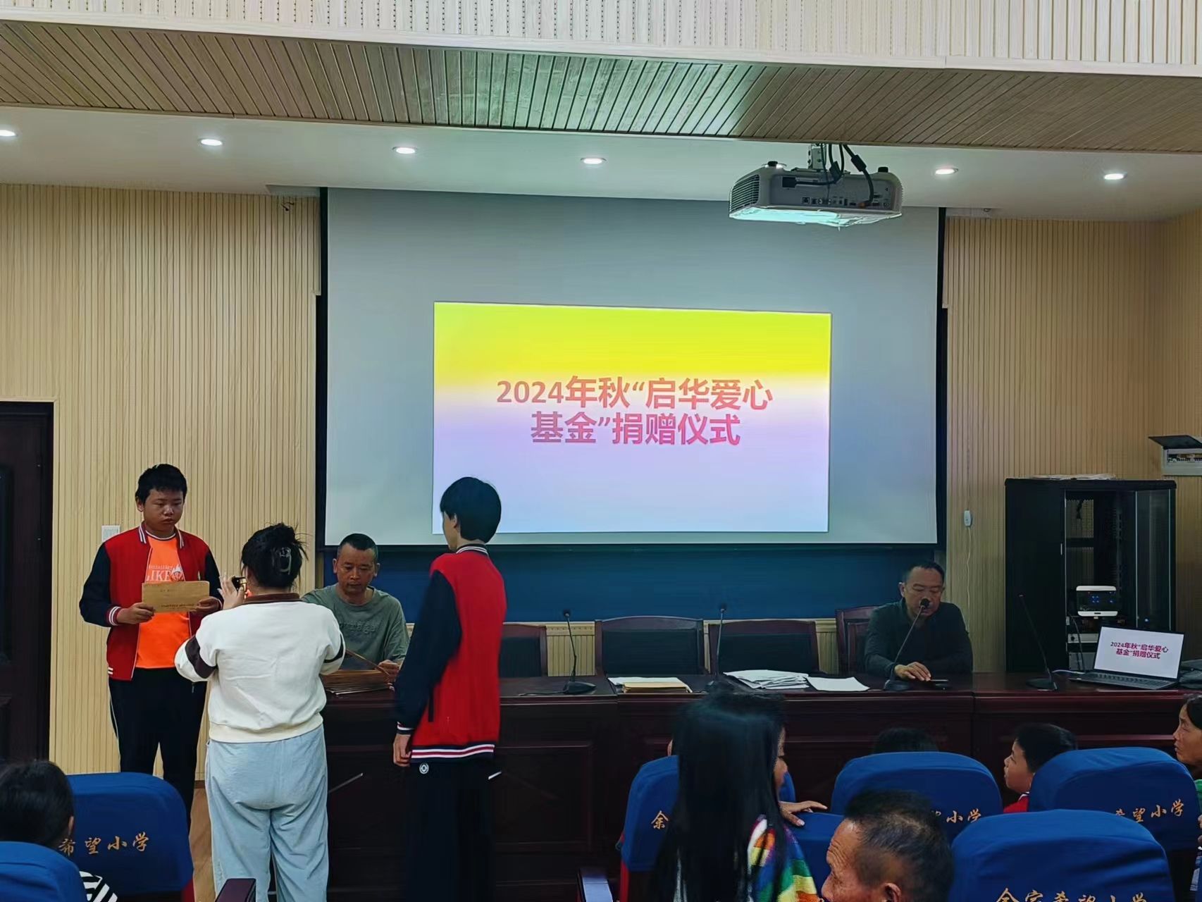 2024年10月6日,在这个金秋时节,英国365上市公司“启华爱心基金”捐赠仪式在江西景德镇丽阳镇余家希望小学举办,旨在帮助贫困学生顺利完成学业,为他们点亮知识的明灯,照亮前行的道路。50多位受捐方的师生和家长们学校领导齐聚现场,共同见证这份爱心的传递。 仪式上,丽阳镇中心学校书记、校长袁怀国表达了对“启华爱心基金”的深深感激。他承诺,这笔善款将主要用于资助学校的贫困学生,确保他们不会因为经济原因而失去接受教育的机会。同时他鼓励同学们珍惜这份关爱,努力学习,将来回报社会。