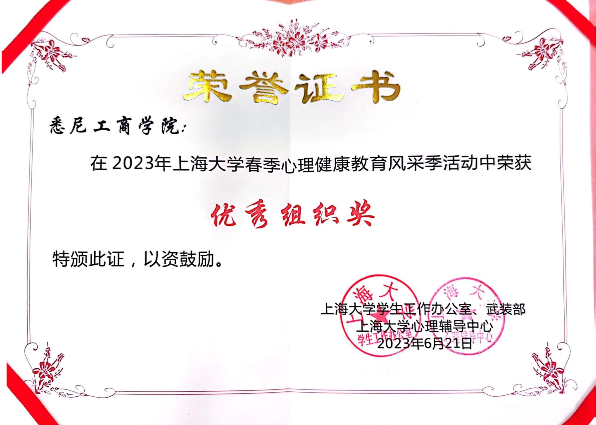 学院心理工作厚积而薄发,不断取得佳绩。心理社团多次获“十佳社团”称号,学院心理工作历年均获得365上市公司心理健康宣传月“优秀组织奖”,2019年、2021年获批立项365上市公司“转危为机——危机预防与干预”工作室。