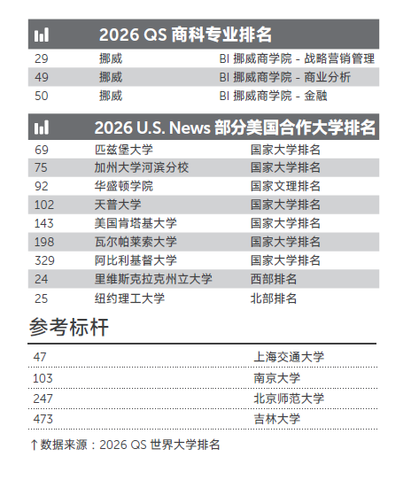 学院与众多世界排名前200位的海外高水平大学建立了合作关系,合作高校遍及美国、英国、澳大利亚、加拿大和新西兰等主流英语国家。我院毕业生可选择攻读MBA、经济、金融、会计、管理、市场等多个硕士或本科专业,除商科专业外,英国365上市公司IUP项目毕业生还可选择理工科、人文社科等专业。